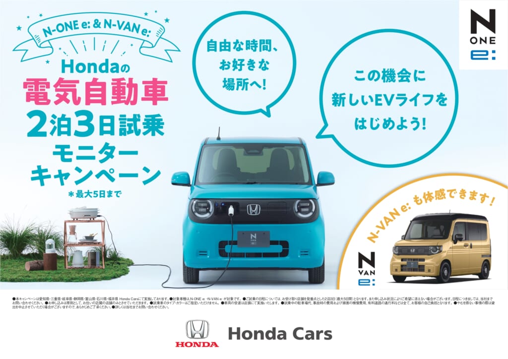 2025年に新登場したN-ONE e:またはN-VAN e:を3日間試乗していただけます♪