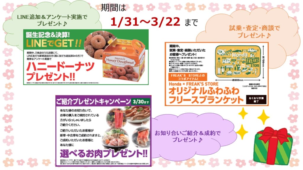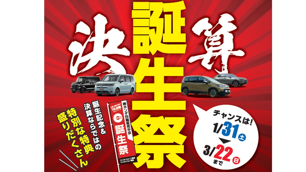 ホンダ四輪販売中京の誕生記念&決算で特別な特典が