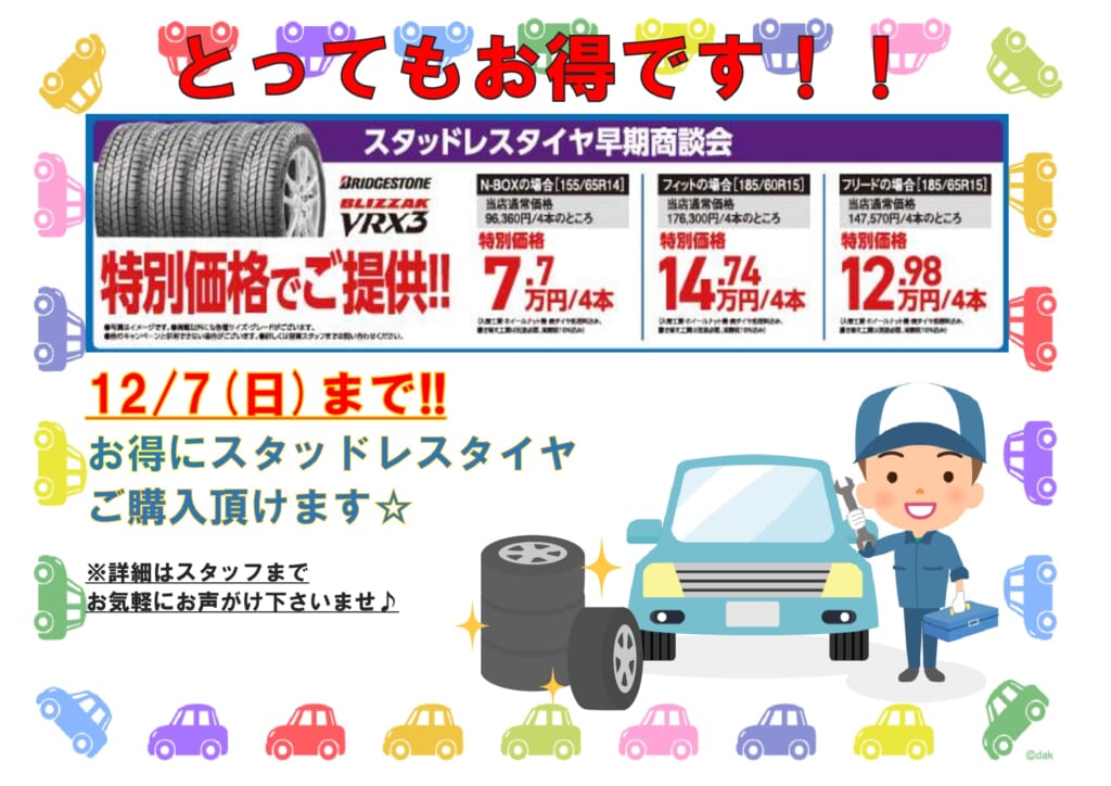 スタッドレスタイヤのご準備がまだのお客様…お急ぎください💦